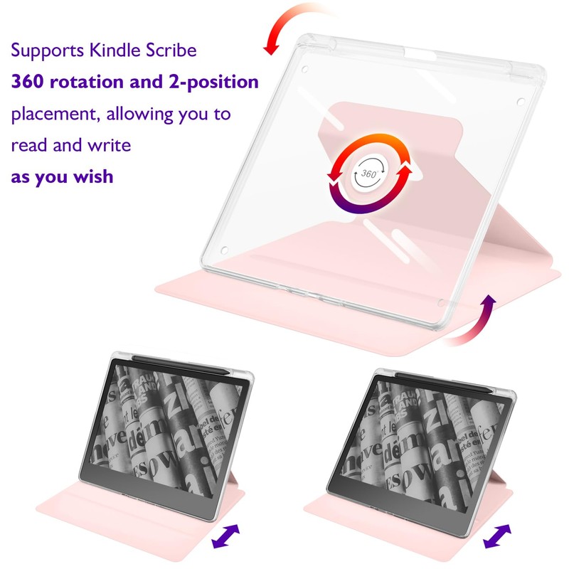 ERUNTO Hülle für 10,2 Zoll Kindle Scribe (Veröffentlichung 2022 und 2024), 360-Grad drehbare ultraleichte Acryl-Schutzhülle, 2-Positionen-Ständerhülle, automatische EIN- und, Stiftfach (Rosa)