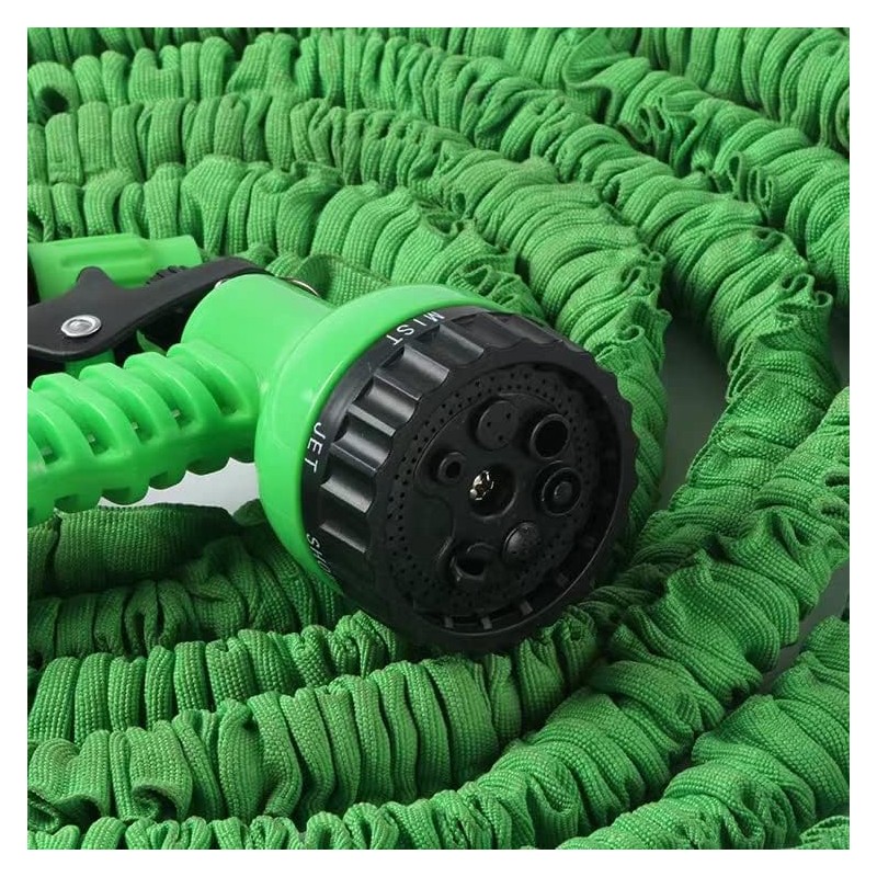 - Der dehnbare Gartenschlauch besteht aus natürlichem Latexschlauch, unter genügend Wasserdruck ist er auf 3 mal lang erweiterbar, wenn der Wasserdruck ausgeschaltet wird, kann der Schlauch auf seine ursprüngliche Länge zurückgezogen werden.