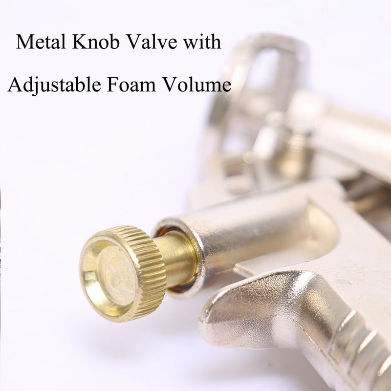 - Einstellbar: Das Legierungsknopfventil dieser Schaumpistolenverlängerung zum Verstemmen ist einstellbares Design, Sie können es drehen, um die Schaummenge in der Zeit einzustellen. Dieses Design kann Ihnen helfen, das Schaumvolumen während des Gebrauchs leicht zu kontrollieren, um Verschwendung effektiv zu verhindern