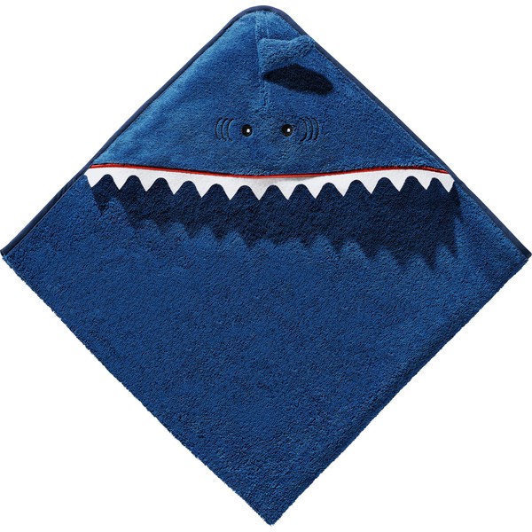 Erwin Müller Children's Hooded Bath Towel Shark Walk, Terry, Blue, Size 100 x 100 cm