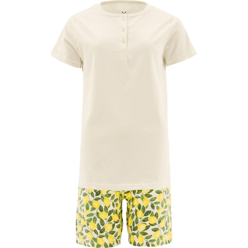 Erwin Müller Damen-Shorty Single-Jersey Allover Zitronen gelb Größe 48 - Rundhalsausschnitt, mit Bindeband und Gummibund, Eingriffstaschen, weiche Qualität