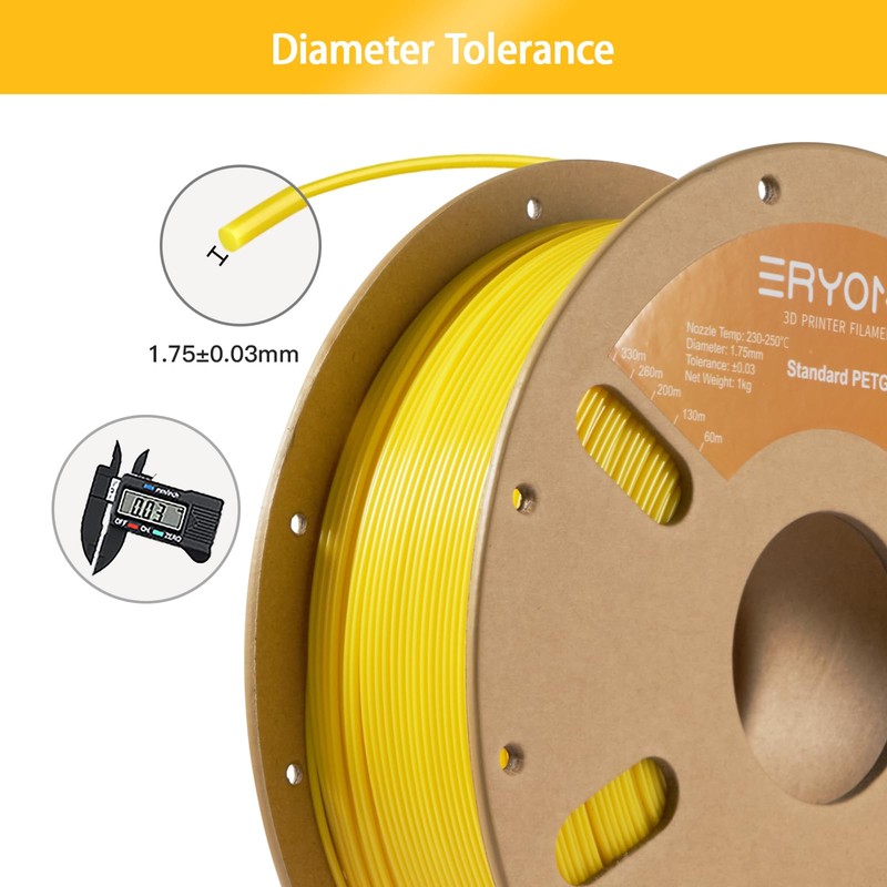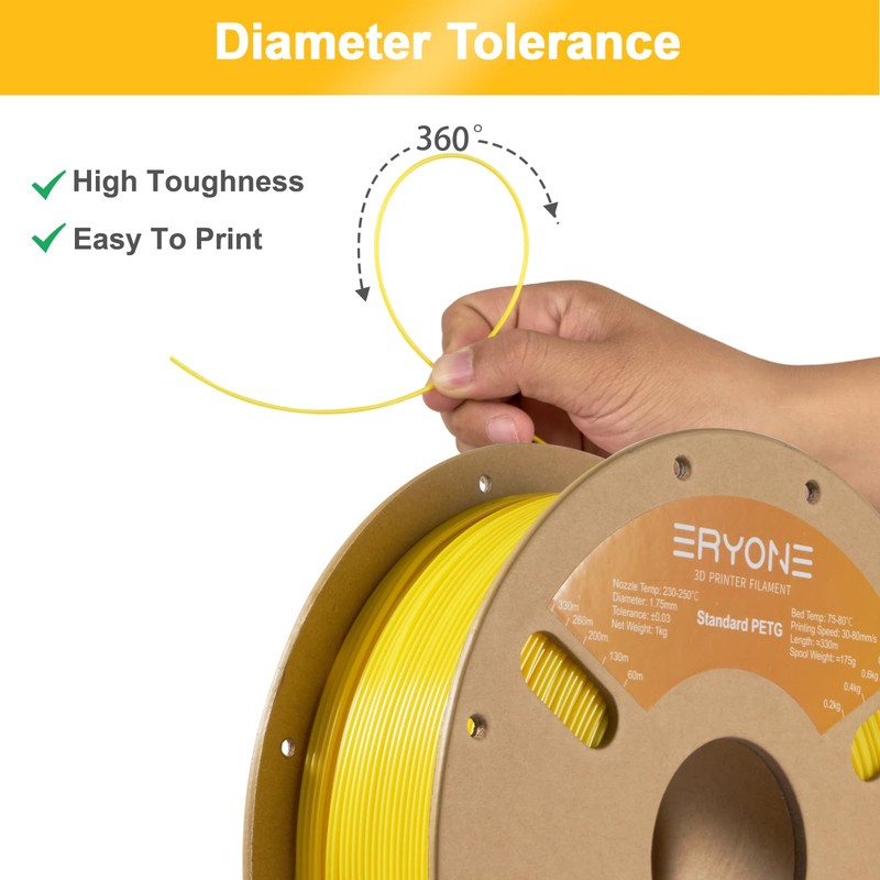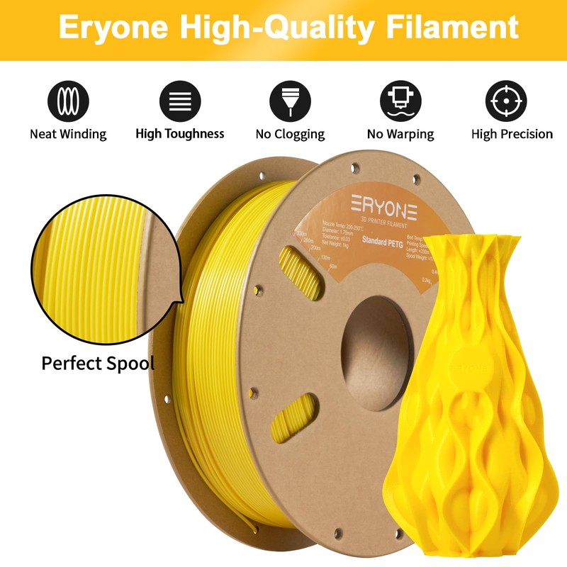 ERYONE PETG Filament for 3D Printer, 1.75mm +/-0.03mm, 1kg (2.2LBS)/Spool, Yellow