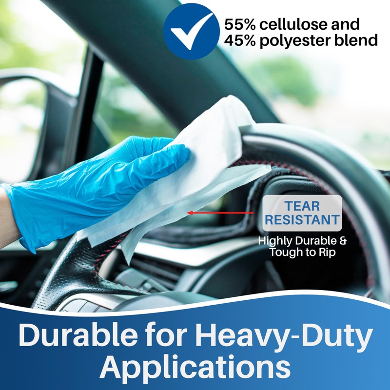 - DURABLE & EFFECTIVE – Constructed from a cellulose-polyester blend, these wipes are durable and do not easily tear. Depending on your needs, that can potentially be rinsed and reused for added convenience and cost efficiency.