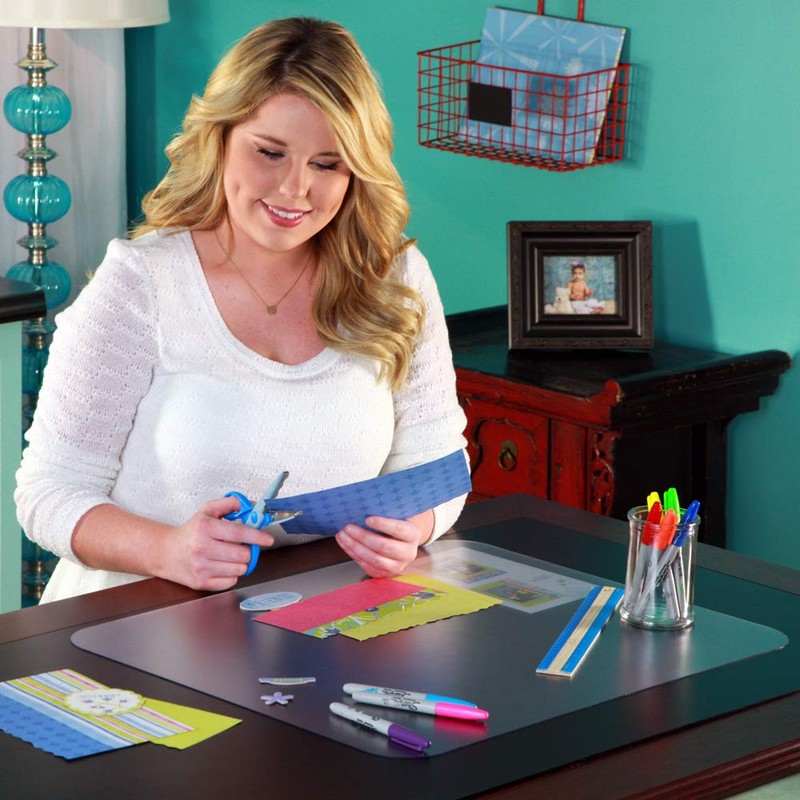 Personalize, organize and protect your work space with ES Robbins quality Desk pad. Our desk pad offers a superior writing surface that will not indent, scratch or stain. The smooth surface reduces writing fatigue. The unique non- glare, non-slip surface provides a perfect way to protect your personal photographs.