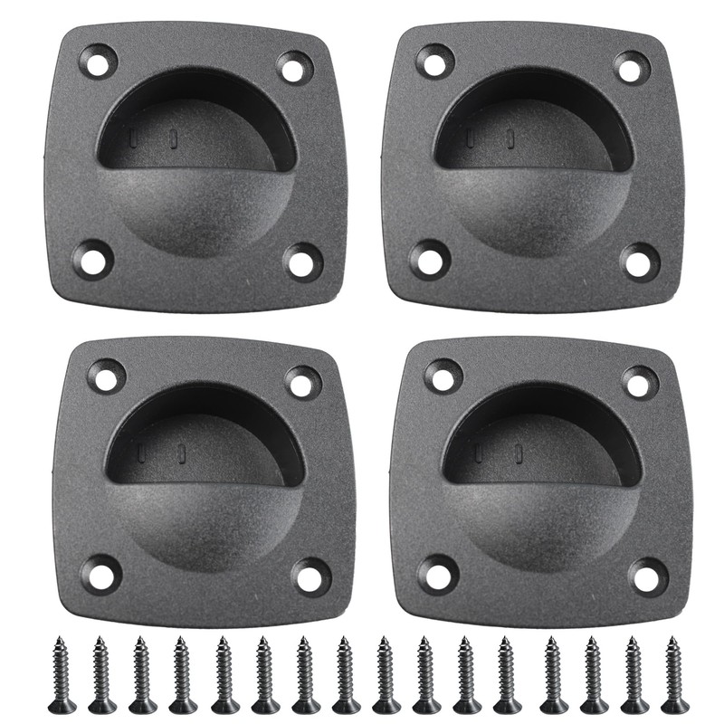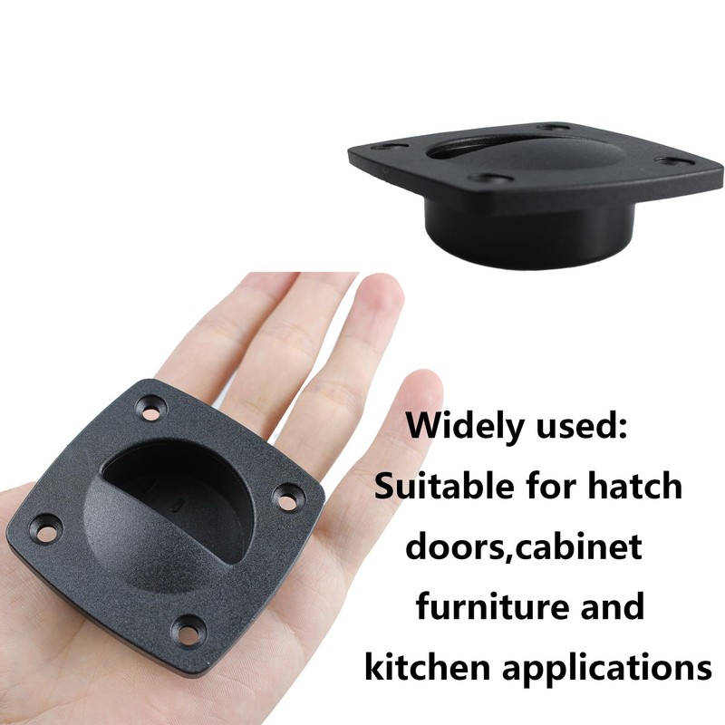 esahpss 4 Pcs Nylon Recessed Flush Sliding Door Handle Pull Square Hatch Pull Handle,Motorboat Marine Boat Yacht Cabin Accesories,L2.32× W2.32×H0.39 Black