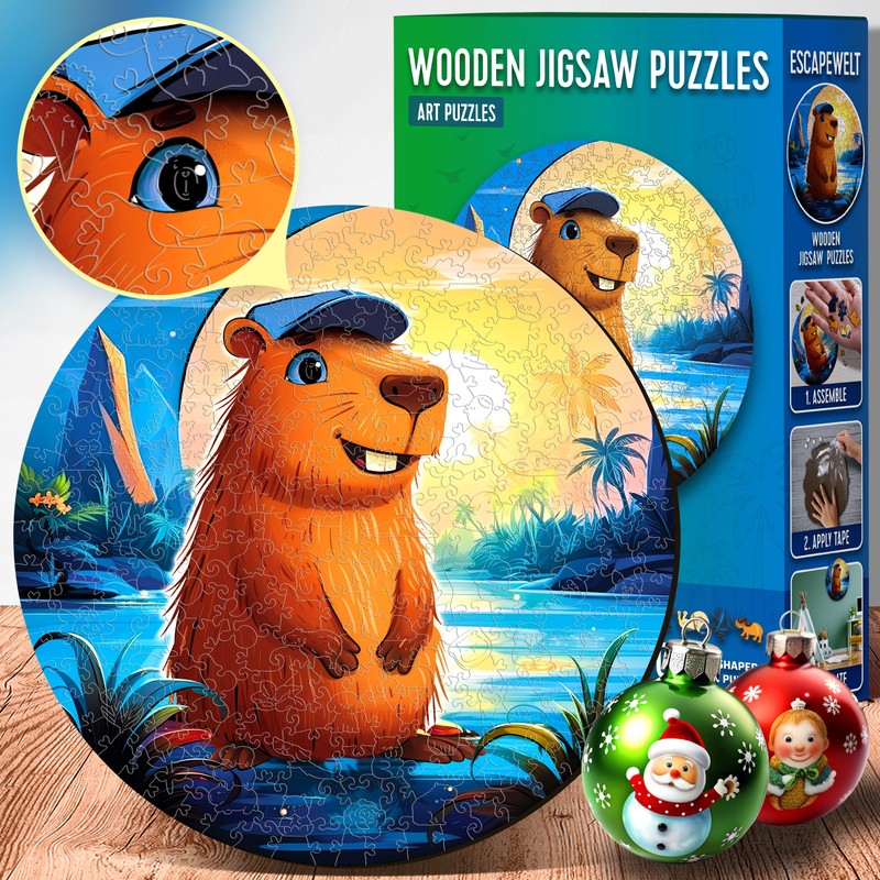 ESC WELT Capybara Wooden Puzzle 200 Pieces - Challenging Thinking Game for Children and Adults - Environmentally Friendly & Fun Learning Toy - Challenging Game - Wooden Thinking Game