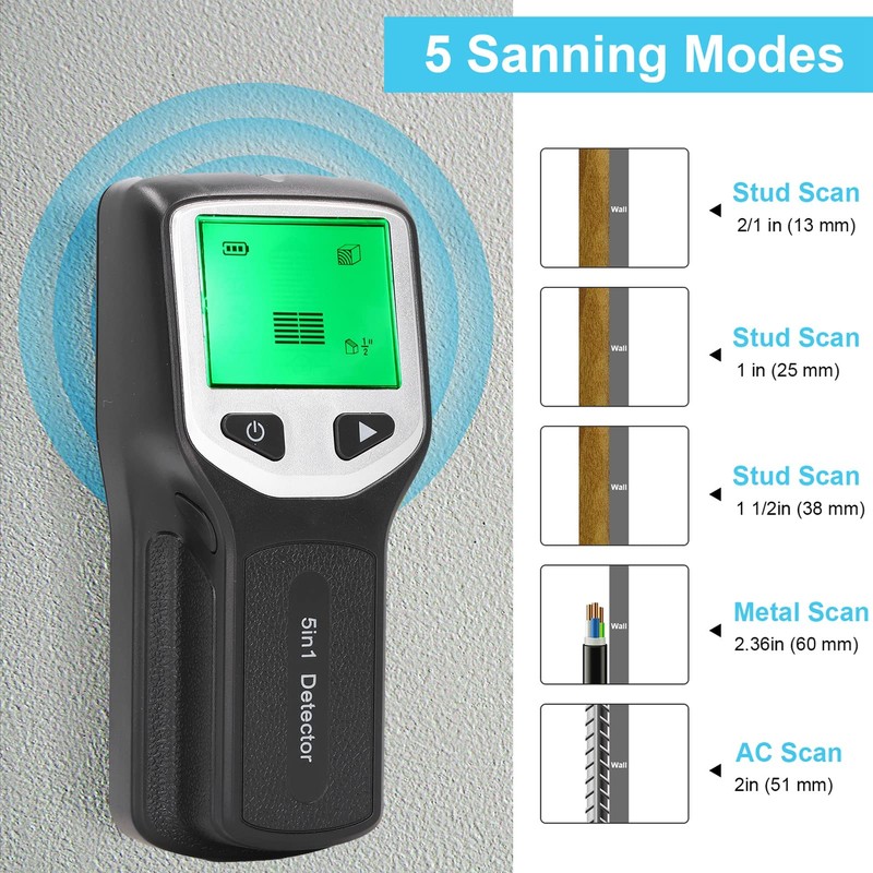 - Amplia aplicación: el detector 5 en 1 es adecuado para varios usuarios, incluidos profesionales, propietarios de viviendas y amantes del bricolaje. Su multifuncionalidad facilita las revisiones y renovaciones del hogar para todos los niveles de experiencia.