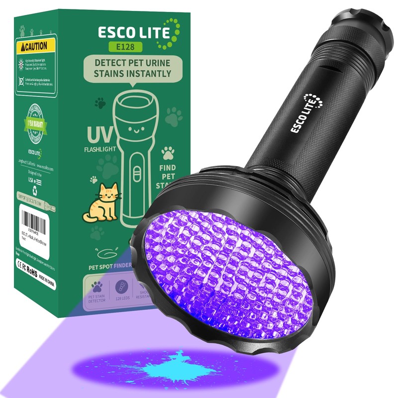 ESCO LITE Blacklight Flashlight 128 LED UV Flashlight, Upgraded Bright 395nm Handheld Ultraviolet Light for Pet Urine Detection, Scorpion Hunting