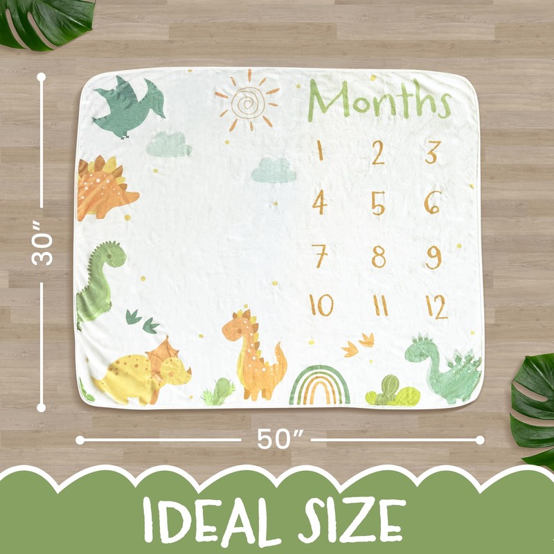 - [A Thoughtful Gift]: This premium baby growth blanket, comes with a dinosaur prop to mark every month of growth. Special gift for new parents or baby shower or newborn present, the baby monthly milestone blanket girl or boy, unisex will help you highlight the baby’s progress and create an incredible photo collage of their first year.
