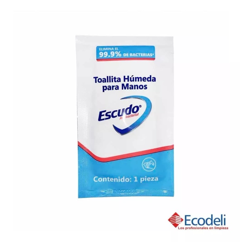 TOALLITAS HUMEDAS INDIVIDUALES ESCUDO, BOLSA/PAQUETE CON 200 TOALLITAS EN EMPAQUE INDIVIDUAL. ELIMINA EL 99.9% DE BACTERIAS.