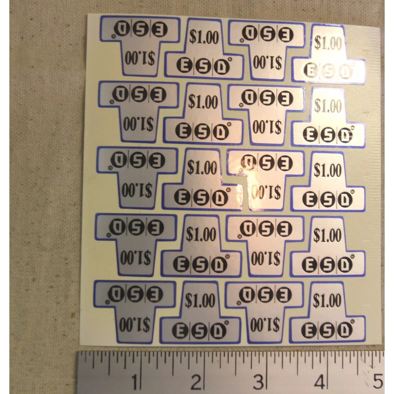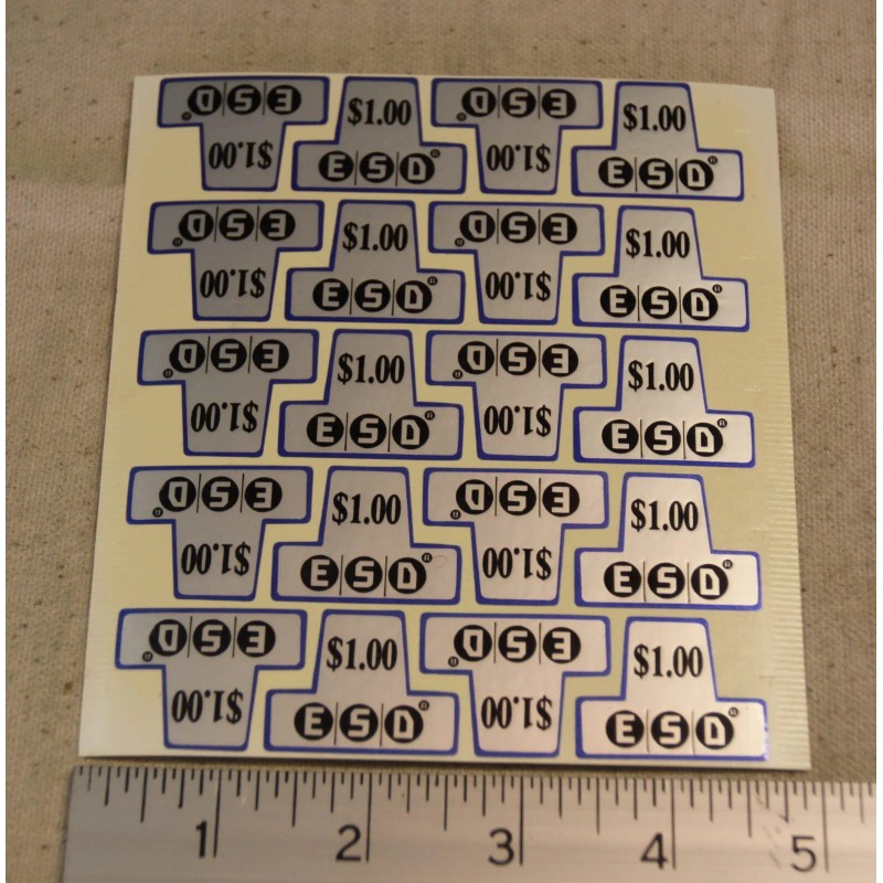 ESD $1.00 decals Vertical 4 coin chute slides , qty. 20 for 1 price, p# 4D100
