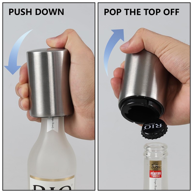 - This magnetic automatic bottle opener is made of high-quality stainless steel, sturdy and durable