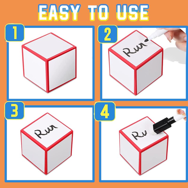 - Repeat Writing and Erasing: blank foam dice has six sides, which can be rewritten, you just need to use a paper towel or rag to gently wipe after writing, no stains will be left; You can write with our matching dry erase marker or other oil based pens
