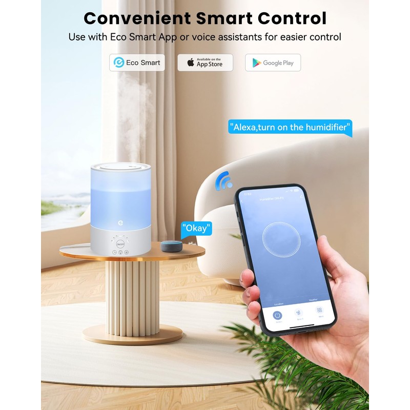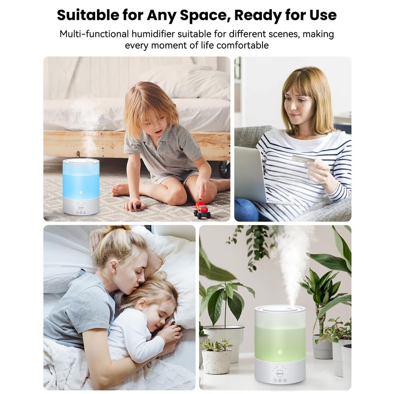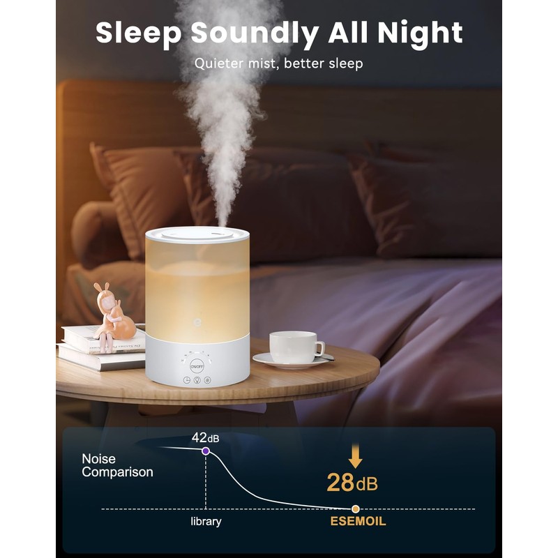 Esemoil Humidifiers for Bedroom, for Large Room, 2.5L Top Fill Cool Mist Humidifiers for Baby, Plants, Smart WiFi Air Humidifier with Diffuser and Nightlight, 28dB, 24H Long Runtime, Work with Alexa