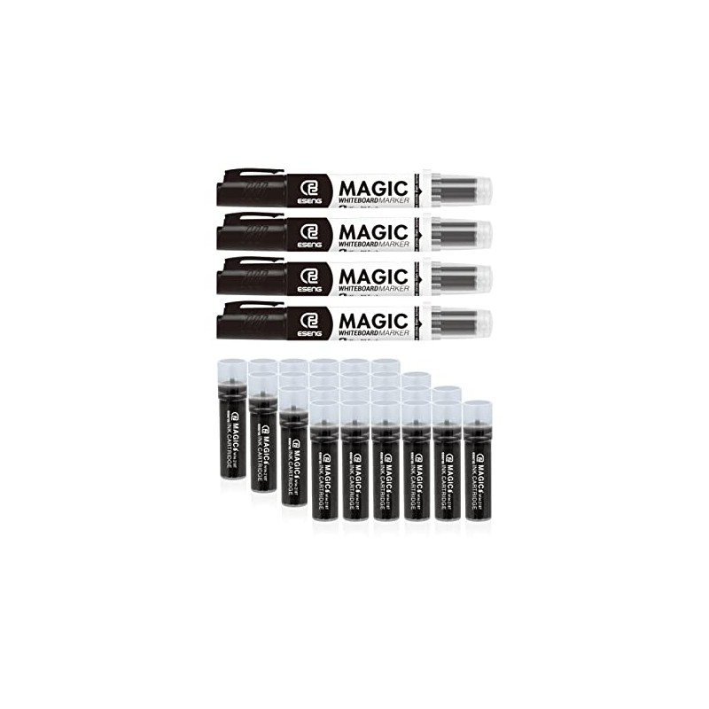 ESENG® Whiteboard Marker Magic WM-218 (4 Markers + 24 Cartridges | Black)