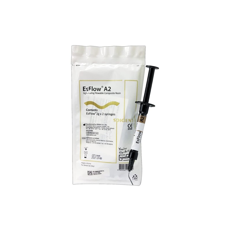 EsFlow 2 x 2 grm - Dental Flowable Light Cure Composite - SPIDENT (Shade A2) (A2)