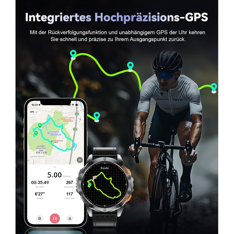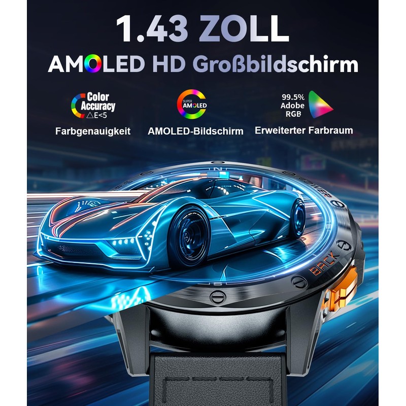 - Robust military smartwatch: This GPS tracker is made of special metal materials and has passed strict military tests in extreme temperatures, low pressure and dust protection to ensure durability and reliability. Equipped with a 1.43 inch AMOLED display, it offers a pleasant feeling and an excellent visual experience. The smart watch has different dials to choose from, and you can even use your own photos as a dial.