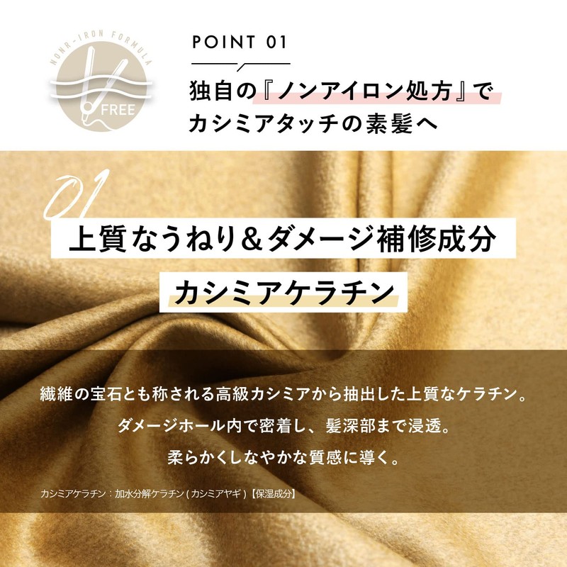 - Formulated with cashmere keratin to repairing damaged hair closely and prevent swelling. For smooth and glossy hair that is non-ironing
