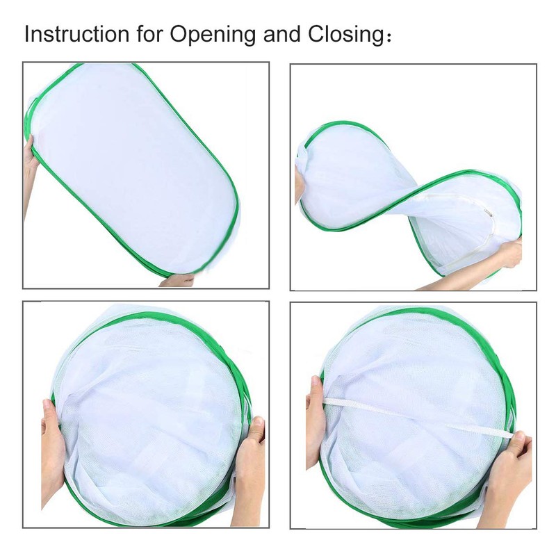 - WINDOW VIEWING DESIGN: This pop-up butterfly cage is designed a vinyl window panel that offers you an excellent viewing and protects habitat kit from wind howling as well. With this butterfly mesh, kids can observe the behaviour of caterpillar's eating and growing clearly and gain more natural knowledge. In addition, the zippered door provides easy access to potted plants.