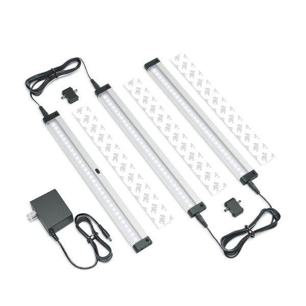 EShine Hand Wave Activated Under Cabinet LED Lighting Kit, Dimmable, 3-Pack 12 in - Touchless Dimming Control, Black Under Counter Lights for Kitchen, Garage, Office, Desk - Cool White (6000K)