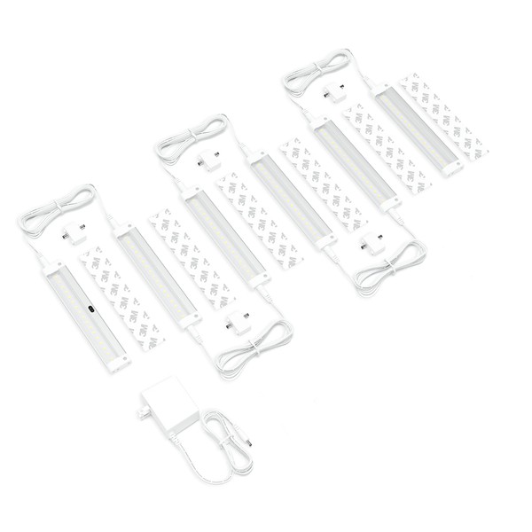 EShine White Finish 6 Panels 7 inch Compact Size LED Dimmable Under Cabinet Lighting Kit, Hand Wave Activated - Touchless Dimming Control, Warm White (3000K)