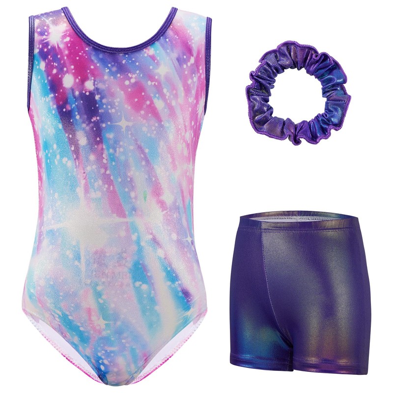 • Girls Gymnastics Leotards Design:sparkly shiny butterfly floral printed,higher neckline in front and lower in back,solid bling shorts matching hair scrunchie,perfect for the demands of gymnastics practice