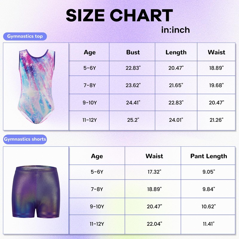 • Size of Gymnastics Leotards: 5-12 Years for your girls choice, please kindly refer the size chart information
