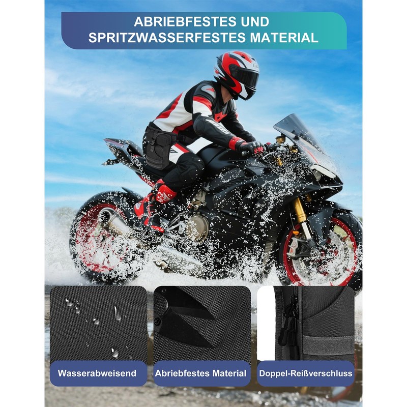 Made of splash-proof, tear-resistant and abrasion-resistant nylon, this fanny pack protects your belongings from splashes and scratches - for motorcycle riding and outdoor activities. Waist 60-140cm, Leg Circumference: 40-73cm adjustable to ensure a stable, comfortable hold that does not slip.