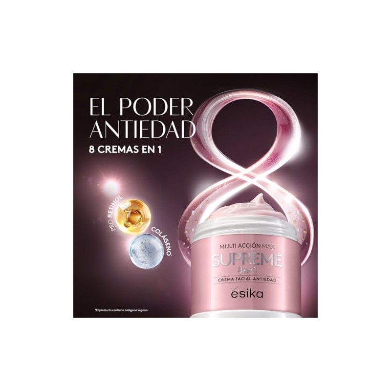 ésika - Crema Facial Supreme 8 en 1 Multi Acción Max 50g, Crema Antiedad, Piel Lisa e Hidratada, Unifica el Tono y Reduce Arrugas, con Pro Retinol y Colágeno, 8 Beneficios en 1