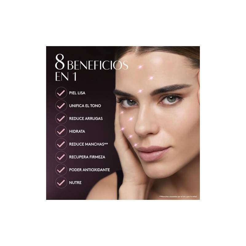 - 8 BENEFICIOS: Esta crema facial de ésika cuenta con 8 beneficios en 1. Obtendrás una piel lisa, unifica el tono, reduce arrugas, hidrata, reduce manchas, recupera la firmeza, tiene poder antioxidante y nutre la piel