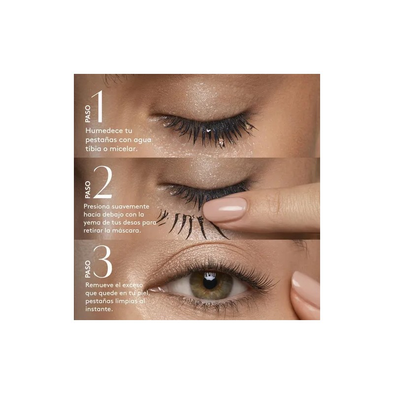 • Se retira fácilmente, ideal para pestañas sensibles o para quienes buscan comodidad al desmaquillarse.