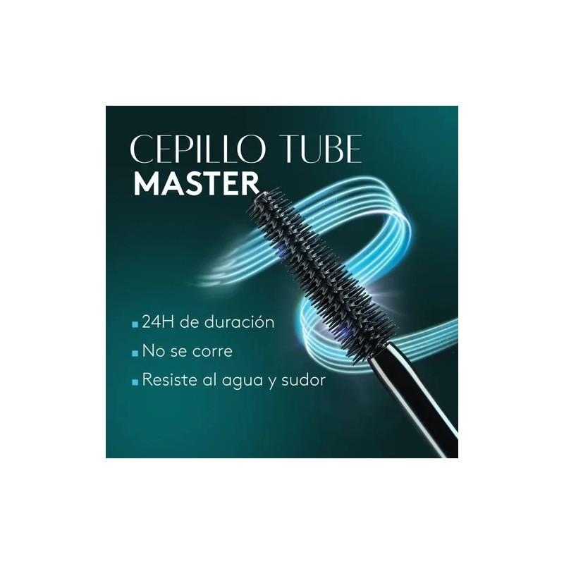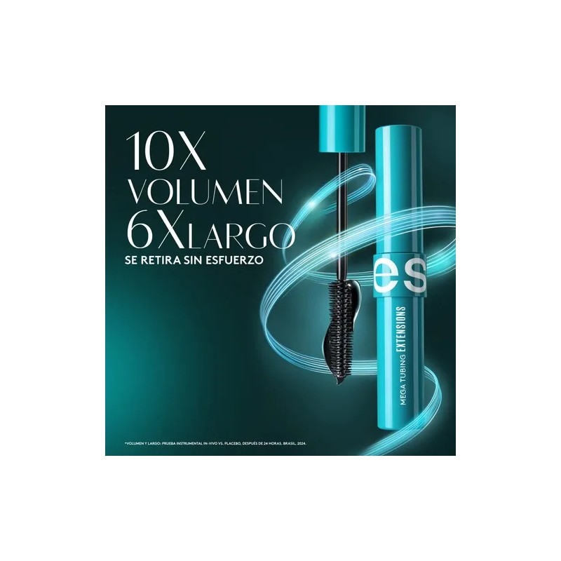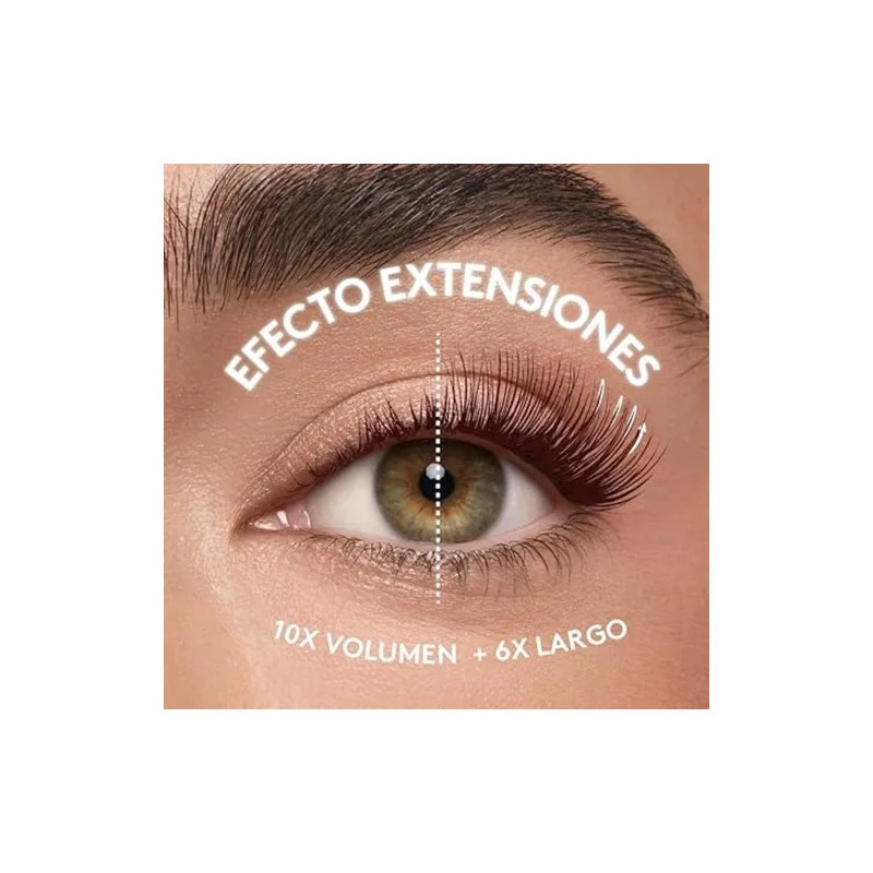 • Tecnología Tubing: fórmula que recubre cada pestaña en un tubo ligero para lograr 10 veces más volumen y 6 veces más largo, sin apelmazar ni encrespar
