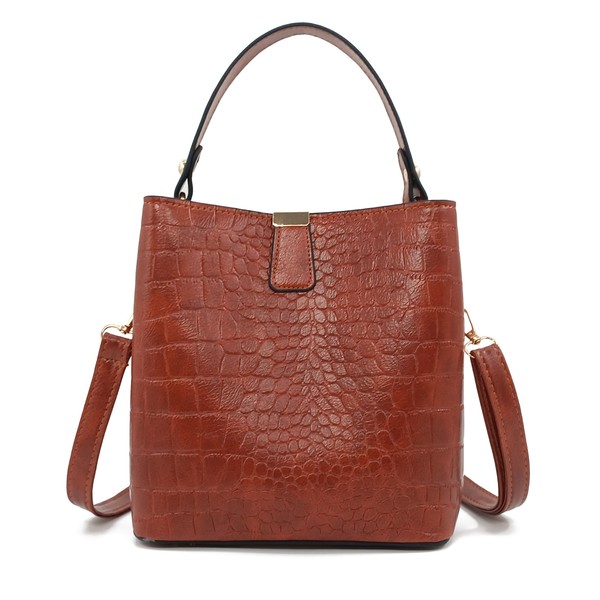 Esimileeya Crocodile Pattern Purses with Crossbody Strap Bucket Bags for Women with Top Handle Brown Tote Bag for Women Croc Purses for Women Hand Bags for Women 2024 Designer