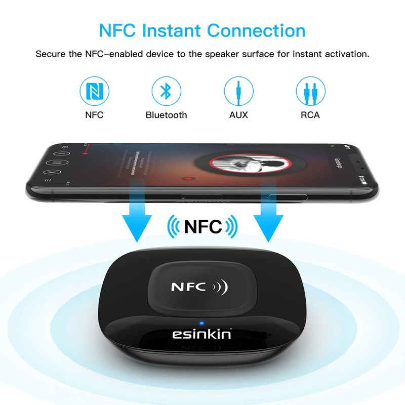 esinkin Bluetooth Receiver Wireless, NFC-Enabled Audio Adapter 4.0 for HD Home Stereo Music Streaming Sound System for 3.5mm (AUX and RCA)