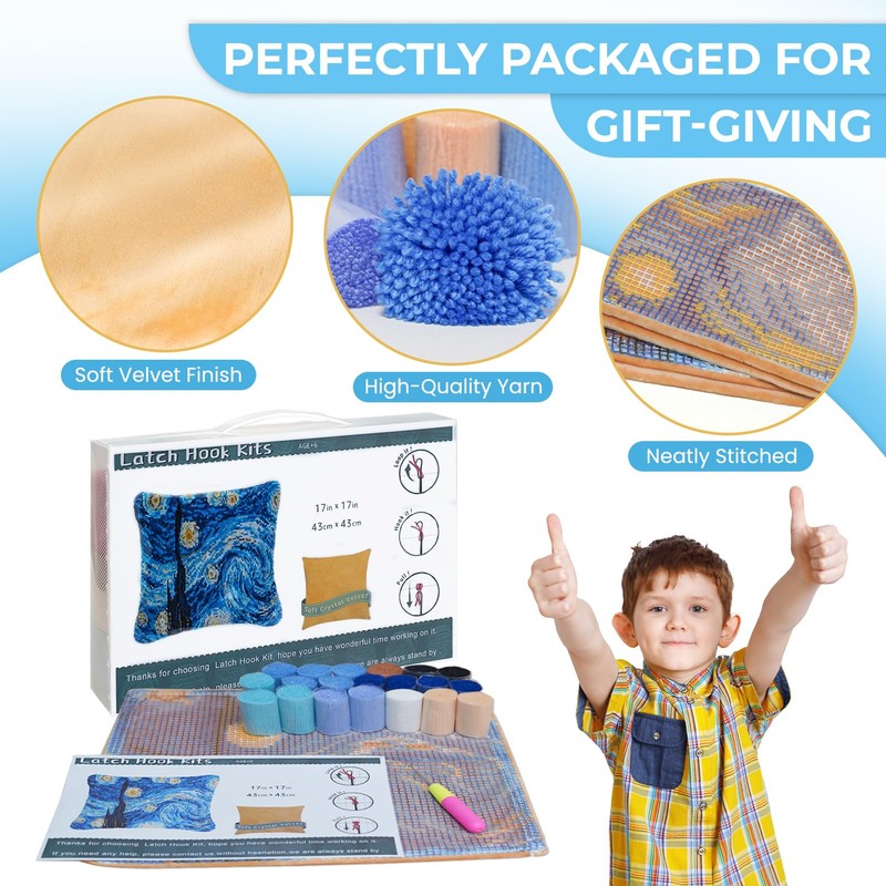 - Easy to Follow Instructions: Our latch hook pillow kits for adults feature a vibrant, pre-printed Starry Sky pattern on the canvas. Clear instructions and color-coded guides make it easy for beginners and children to create a stunning pillowcase