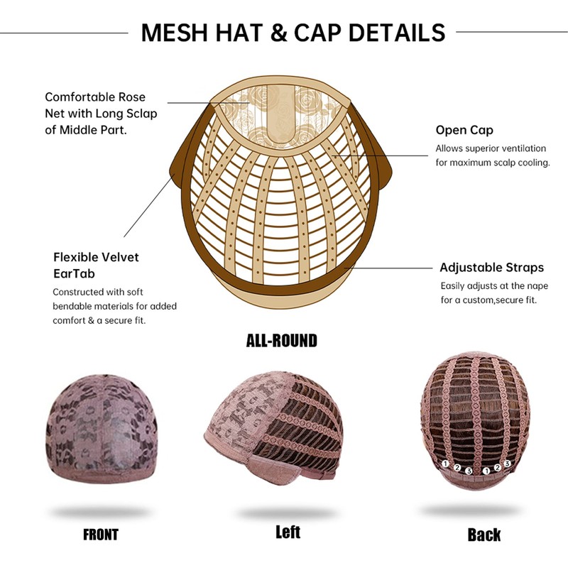 Cap size: average size (22"-22.5") breathable rose net with adjustable.