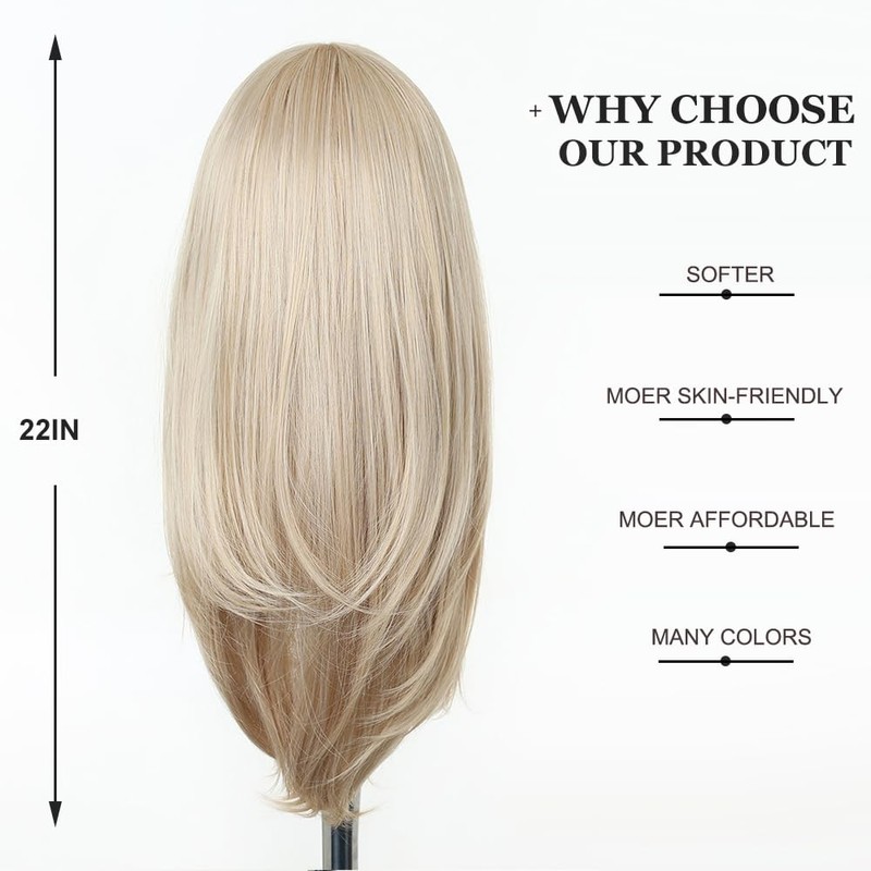 Esmee Long Straight Blonde Wigs for Women with Fringe, Natural Looking Synthetic Hair Wig for Daily Use & Party