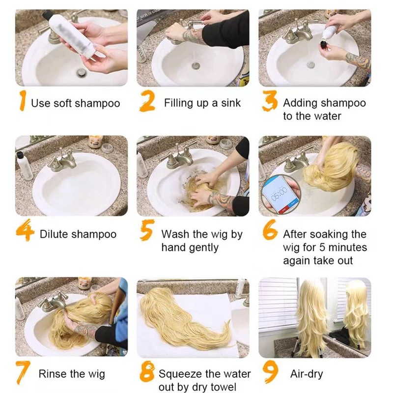 2.our wigs are sterilized,washed,very clean,there is no need to wash it in 1-2 months,just add some water in a sprayer then spritz it on the wig and natural drying it.