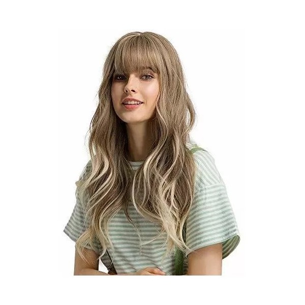 Esmee 24 "Pelucas sintéticas para mujer, largo, ondulado y rubio, con flequillo ligero