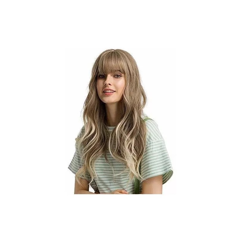 Estilo: Peluca larga y ondulada con flequillo