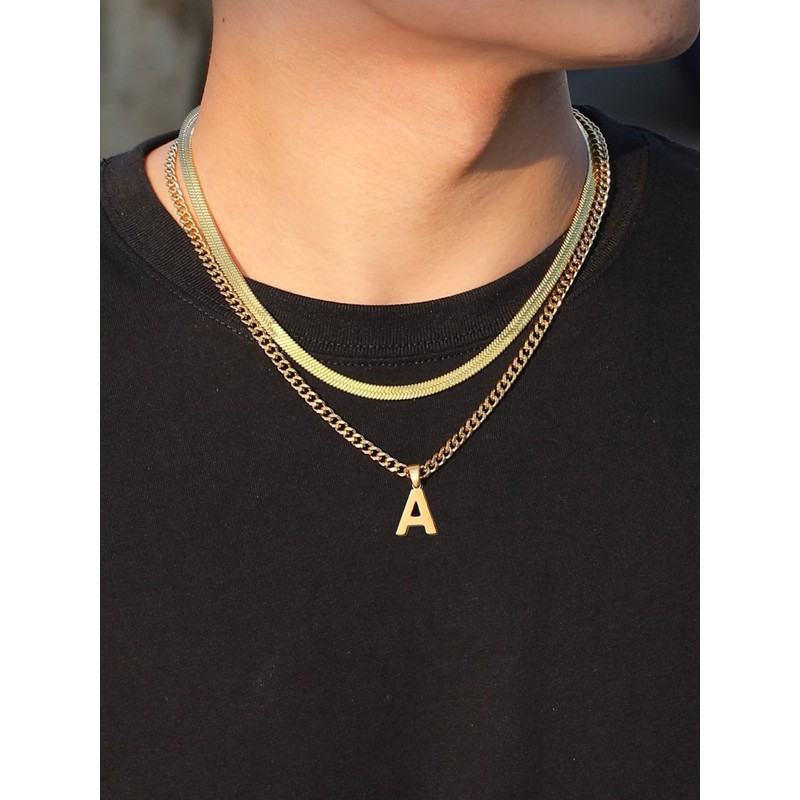 - Men's Necklaces:2 Piece Layered Necklace, Cuban Link Letter Pendant and Herringbone Necklace Set is classic and stylish. You can choose to wear them on their own or layered, both are great choices for making a statement.