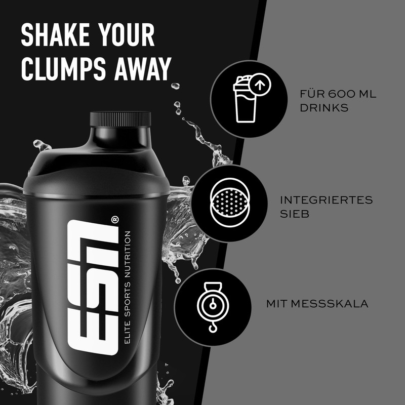 - HYDRATE: Mit insgesamt 600 ml Fassungsvermögen kannst du sicher sein, dass du mit dem transparenten ESN Shaker immer ausreichend Flüssigkeit während des Trainings oder unterwegs zu dir nimmst