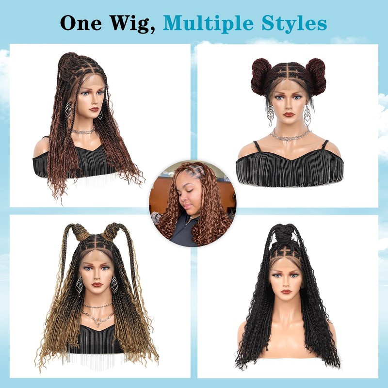 - Perfect Quick Hairstyles: Whether you are attending a party or going about your daily life, you no longer have to worry about spending a lot of time on your hair. This lace front braided wigs series can help you quickly change your look. The versatile knotless braided wigs for black women can create various hairstyles, such as Updo Bun, Two Bun, Ponytail, High Ponytail, and so on. In just ten minutes, you can experience the effect of spending 8 hours in a hair salon