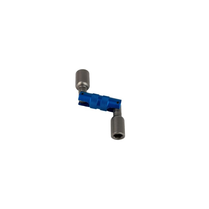 This handy dual nut driver has 1/4" and 5/16" pivoting sockets , allowing it to reach the most difficult angles and tightest screw locations