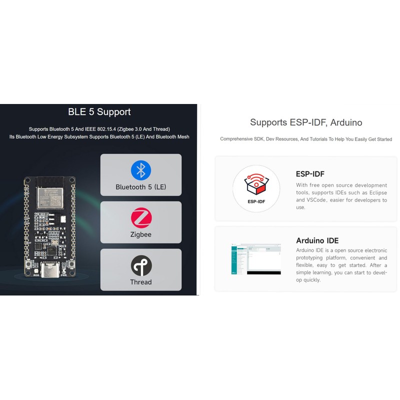 1. Adopts ESP32-H2-MINI-1-N4 module with RISC-V 32-bit single-core processor, up to 96MHz main frequency, built-in 4MB Flash
