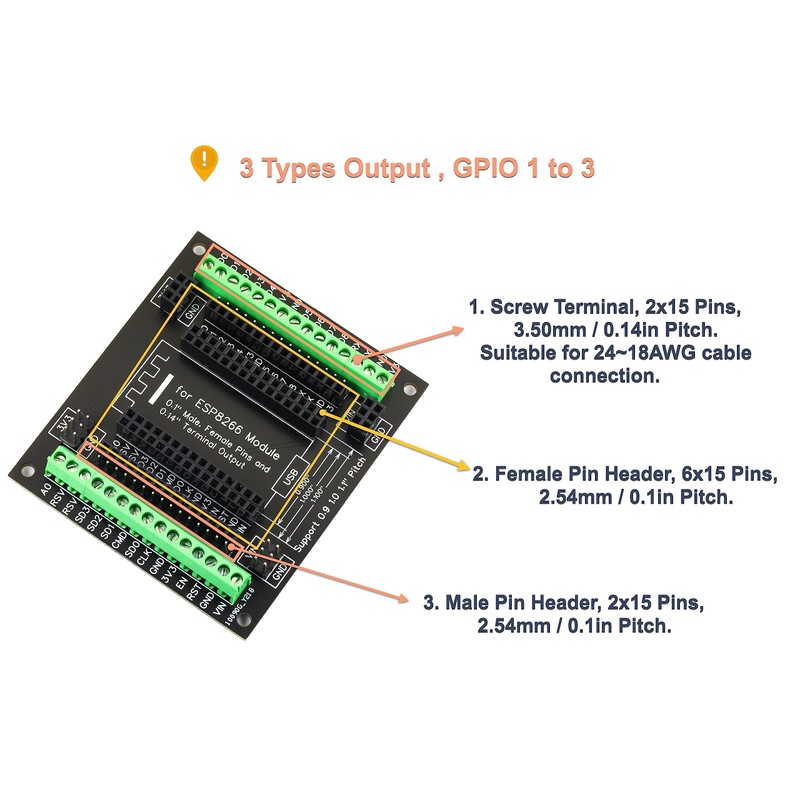 ESP8266 Super Breakout Board 3.5mm / 0.14" Terminal GPIO 1 Into 3 Expansion Compatible for 0.9" / 1.0" / 1.1" Size ESP-12E NodeMCU Development