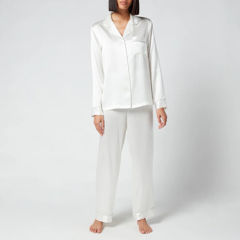The Freya Silk Pyjamas pay homage to timeless silhouettes, with an elegant and classic form. A graceful long-sleeved pyjama shirt with opulent mother-of-pearl style buttons features pockets for convenience and style. Flowy, relaxed pyjama trousers feature a comfortable elasticised waistband and a gentle drawstring tie. This regal ensemble is adorned with tonal piping, and delicately accented with an embroidered ESPA monogram on the cuff.