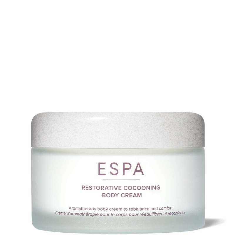 Calm and comfort your skin and senses with the ESPA Restorative Body Cocoon. Designed to inspire balance and relaxation, this rich cream is formulated with a soothing aromatherapy blend. Notes of Rose Geranium, Sweet Orange, Lavender and Palmarosa offer a harmonising effect to rebalance and comfort.
