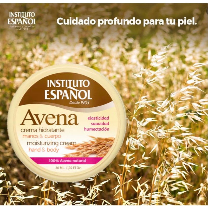 Espanol Avena Oatmeal Body Cream-Set of 3-Spanish Instituto Avena Oatmeal Moisturizing Cream Travel Size 3x30 ml Oatmeal Body Cream Jar The Oatmeal Moisturizing Cream from the Spanish Institute provides hydration, the softness and elasticity that your skin needs on a daily basis. It is ideal for the whole family.