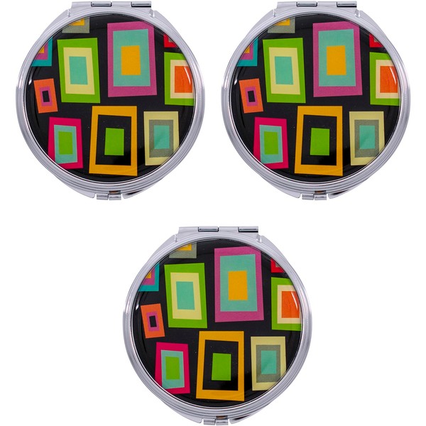 Espejo de maquillaje retro cuadrado (círculo) plegable de bolsillo compacto de doble cara (aumento de 5x + 1x aumento)